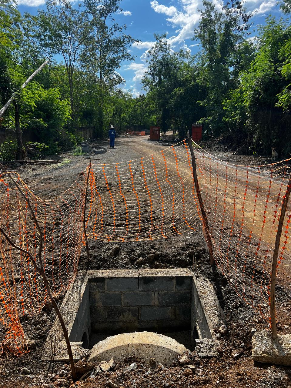 O sistema de drenagem foi projetado para coletar e direcionar a água pluvial e subterrânea, reduzindo riscos de alagamentos e contribuindo para a preservação da infraestrutura viária. A execução envolve a instalação de tubos e dispositivos de captação estrategicamente posicionados para garantir a eficiência do escoamento.