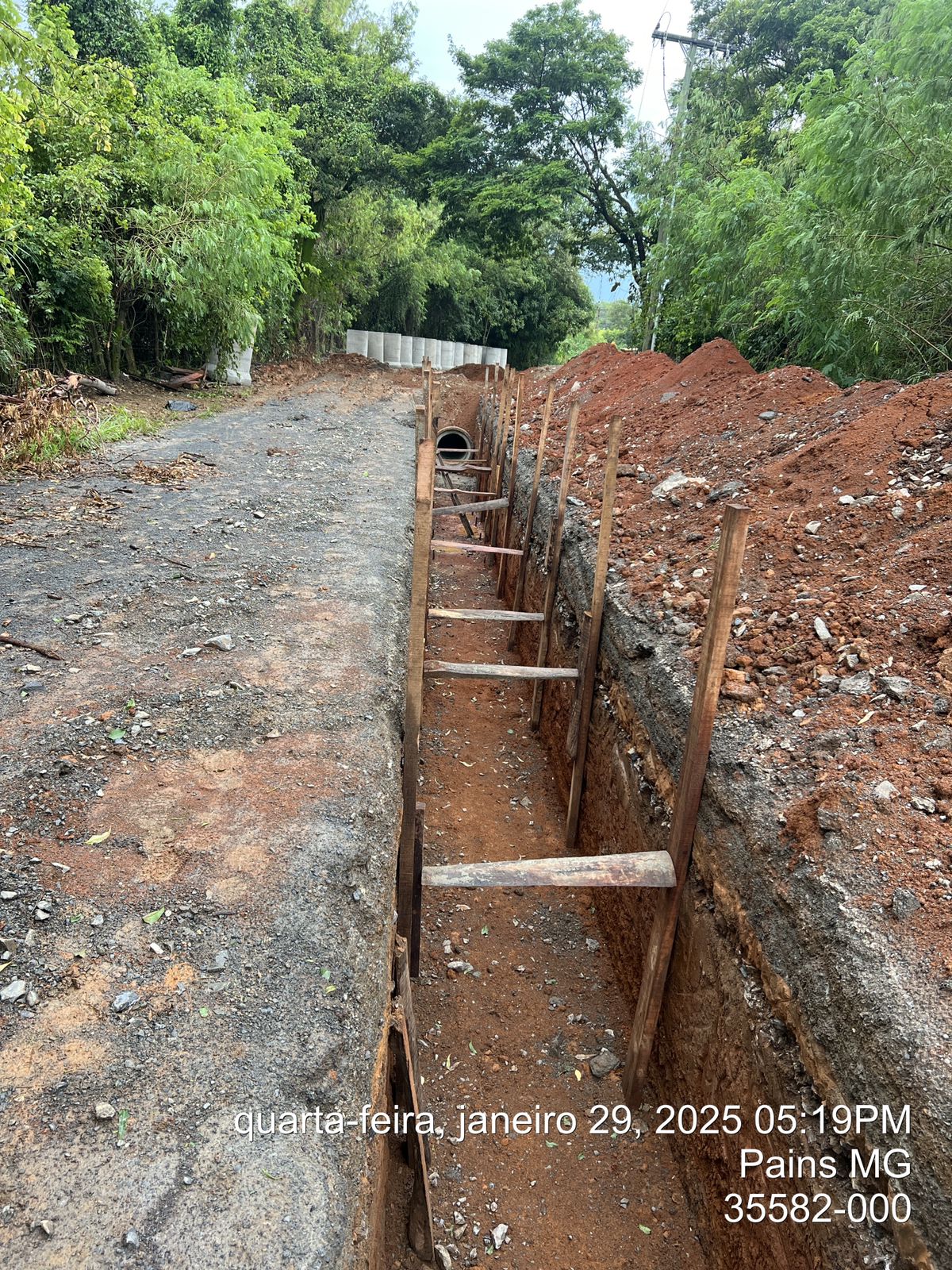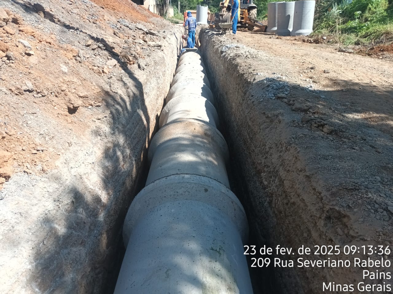 Descritivo: As obras seguem em ritmo acelerado na cidade de Pains - MG. Atualmente, estamos na fase final da implantação da rede de drenagem na Rua Chico Rabelo e na Avenida Gonçalves de Melo.